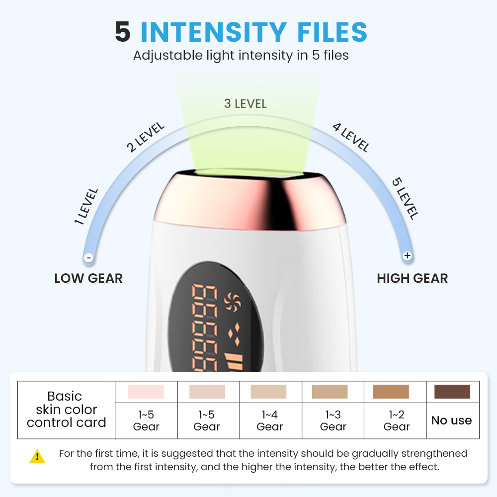 Painless laser hair removal device with 470–1100nm light, 999,999 flashes, 5 gears, and 7–12j/cm²—ideal for b2b markets